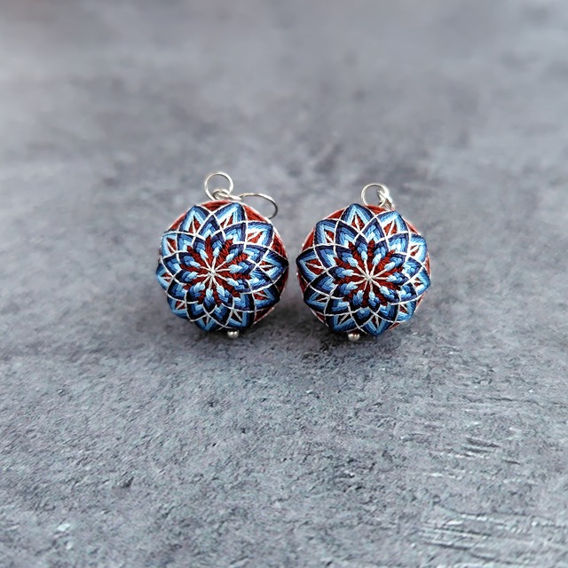 手まりフックピアス Blume[花] - 茶 × 青 -