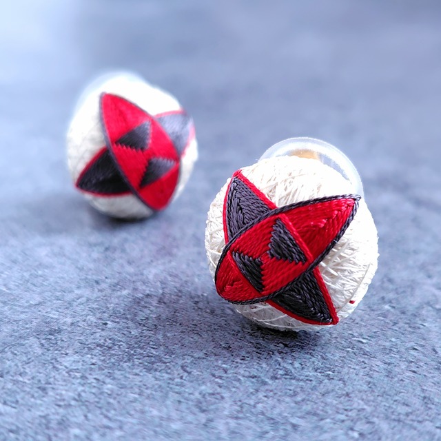 手まりイヤリング Reziprok[交差] - 赤 × グレー -