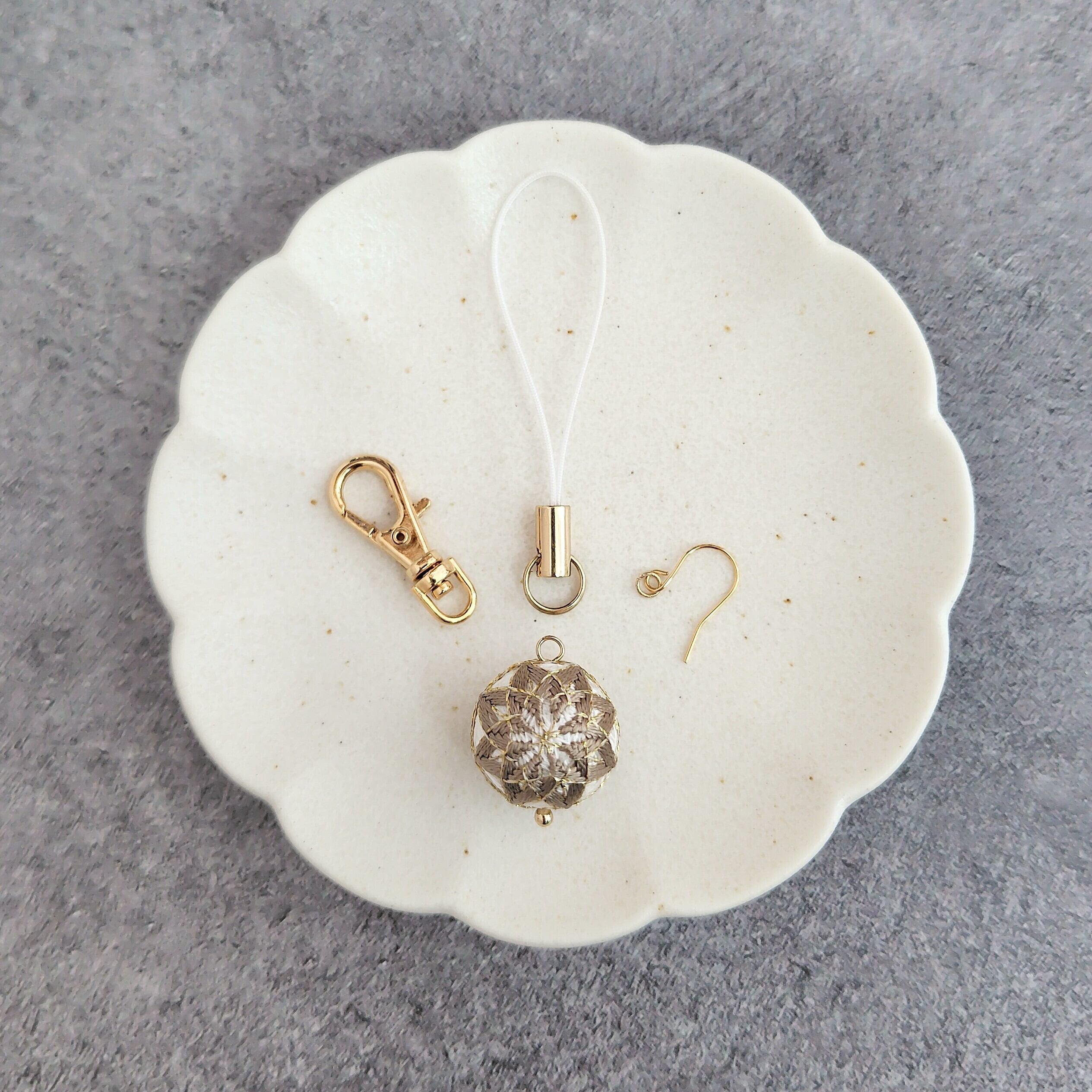・ストラップ(紐は手まりに合わせた白色、金具の色はゴールド)