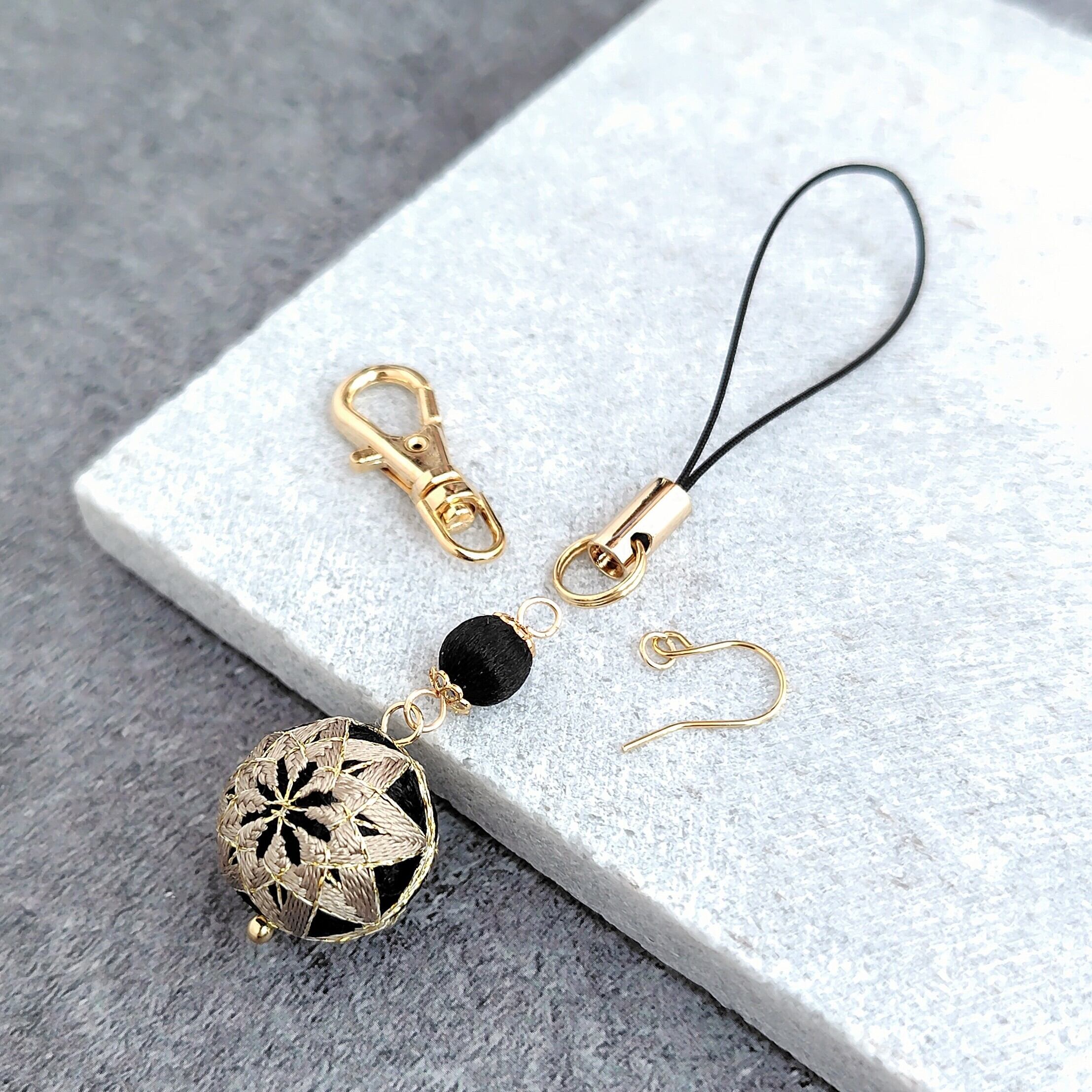 ・ストラップ(紐は手まりに合わせた黒色、金具の色はゴールド)