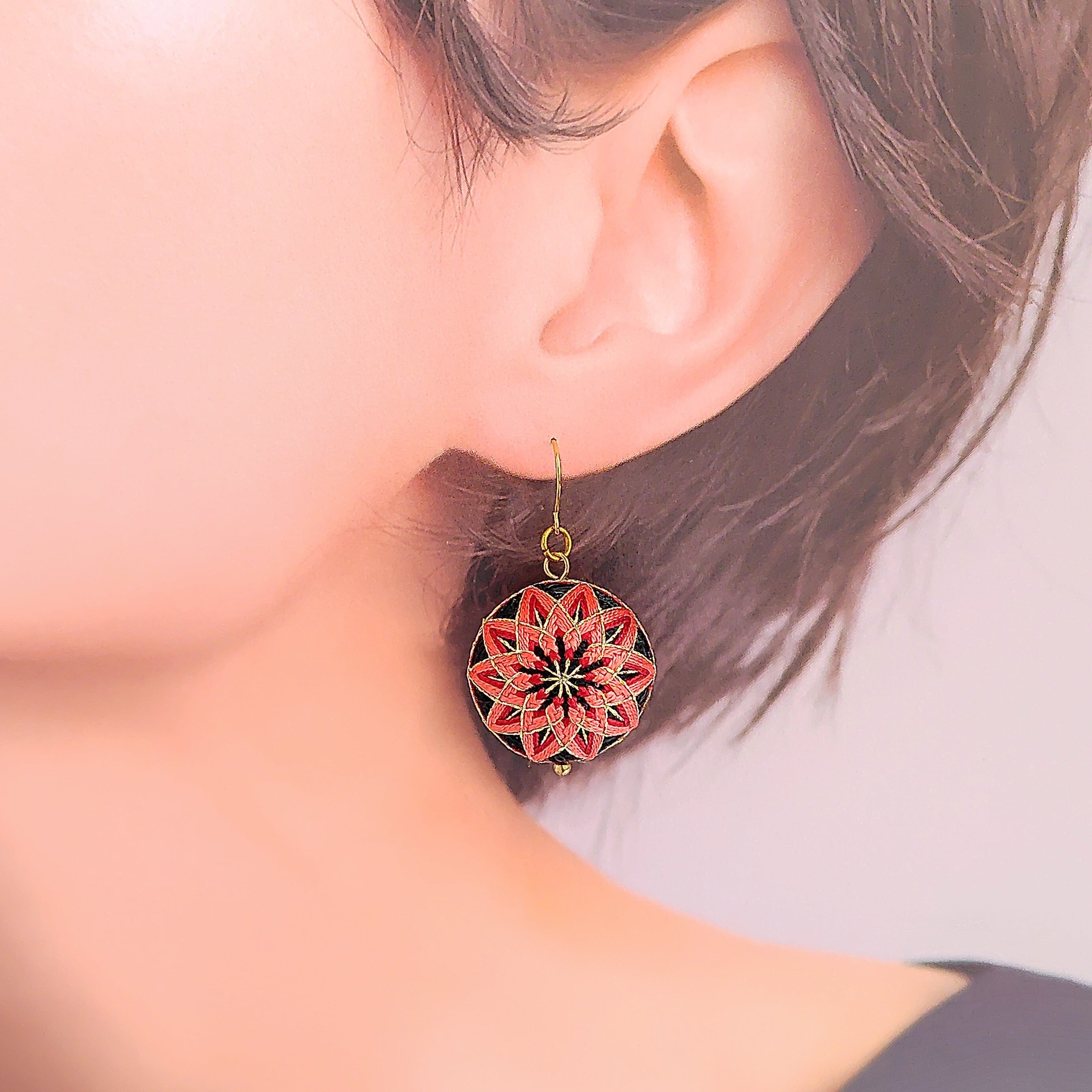 絹糸の光沢により、上品さも感じられるピアスとなりました。