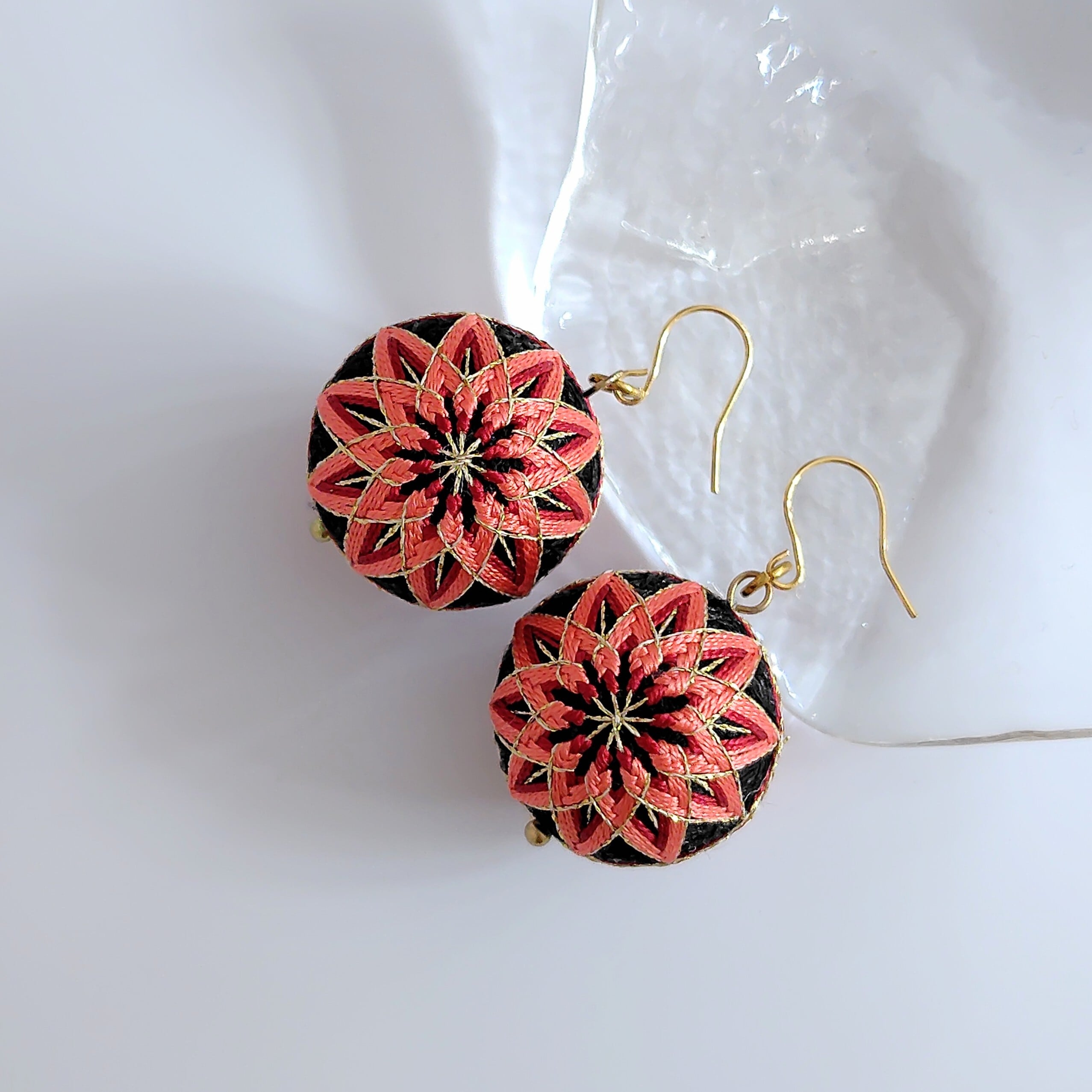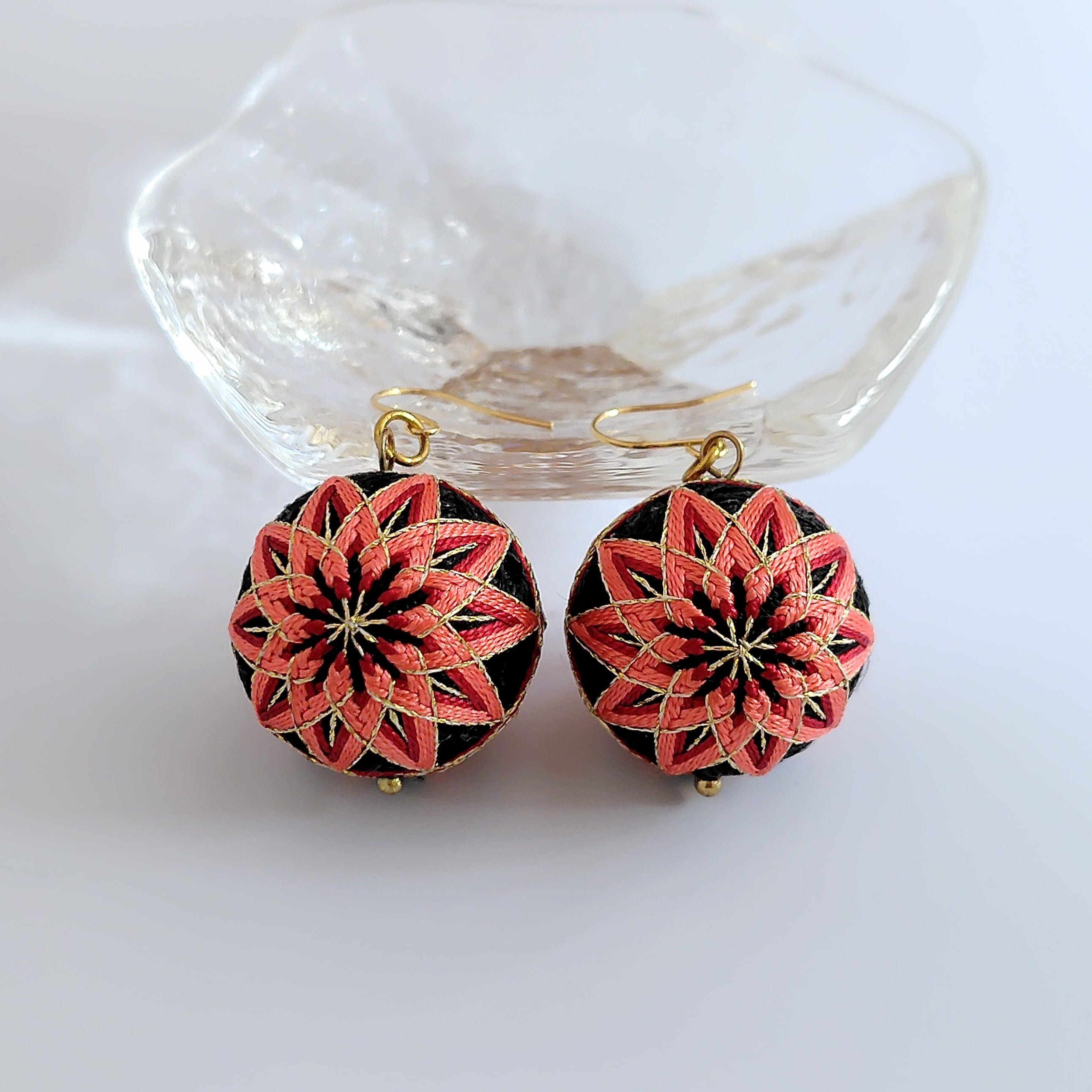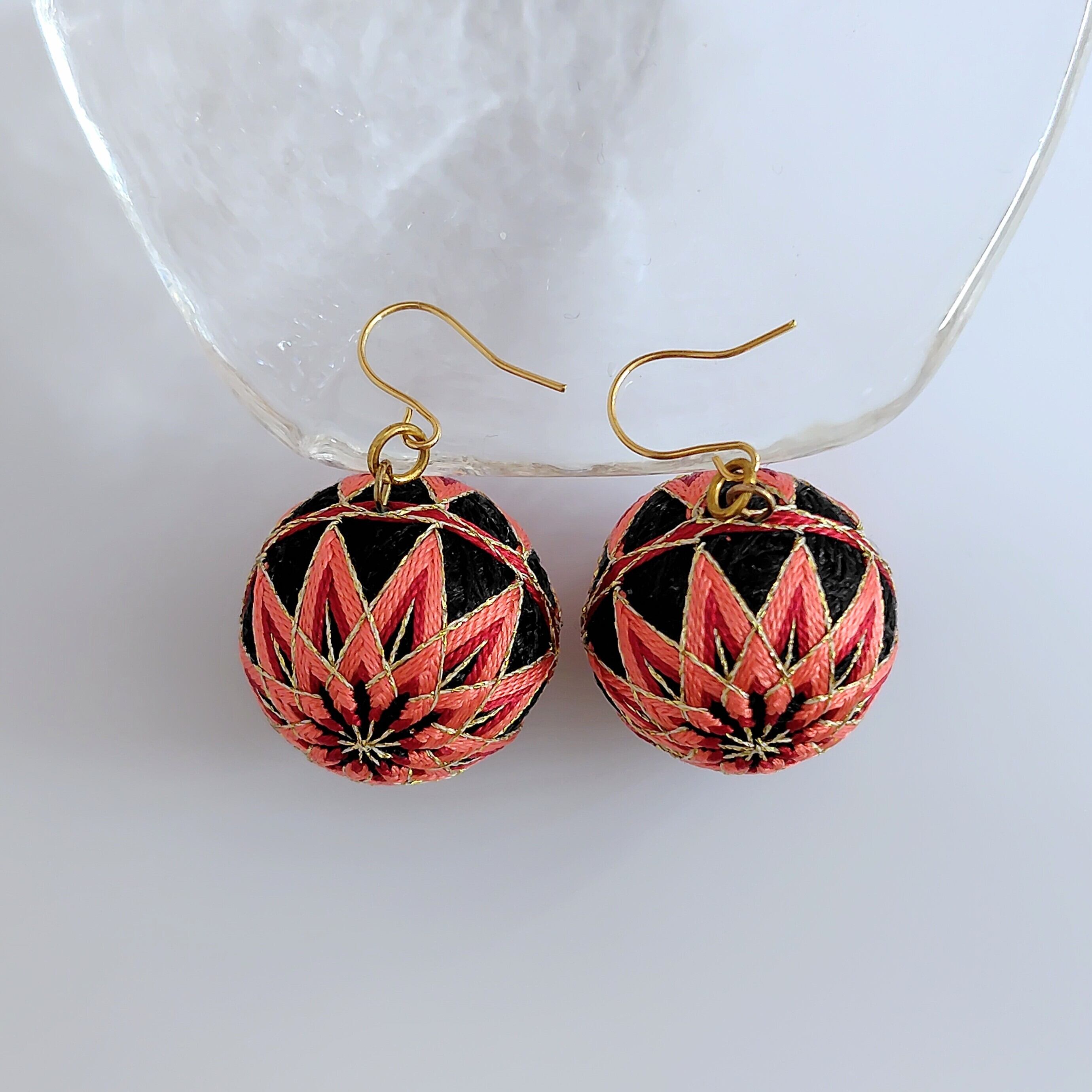 かがった手まりピアスです。
